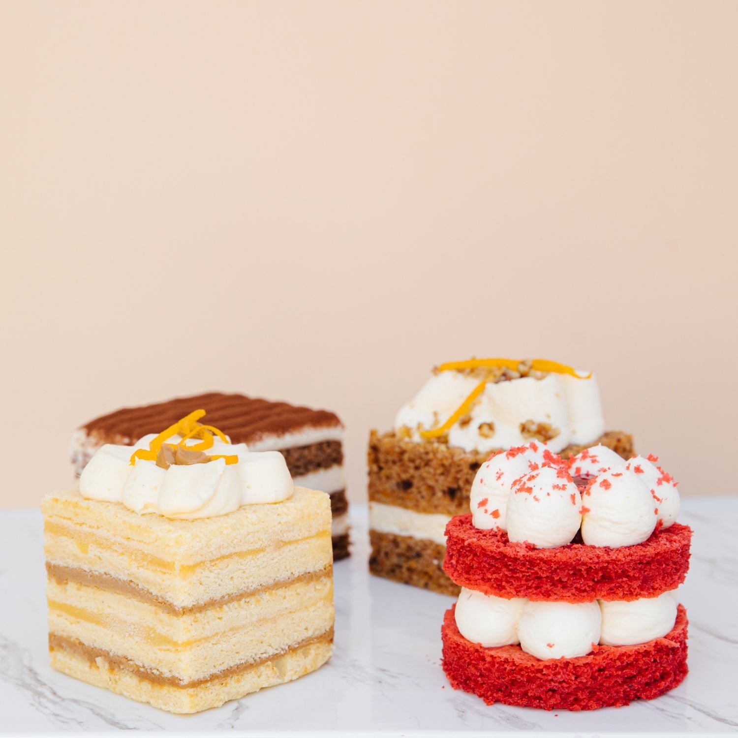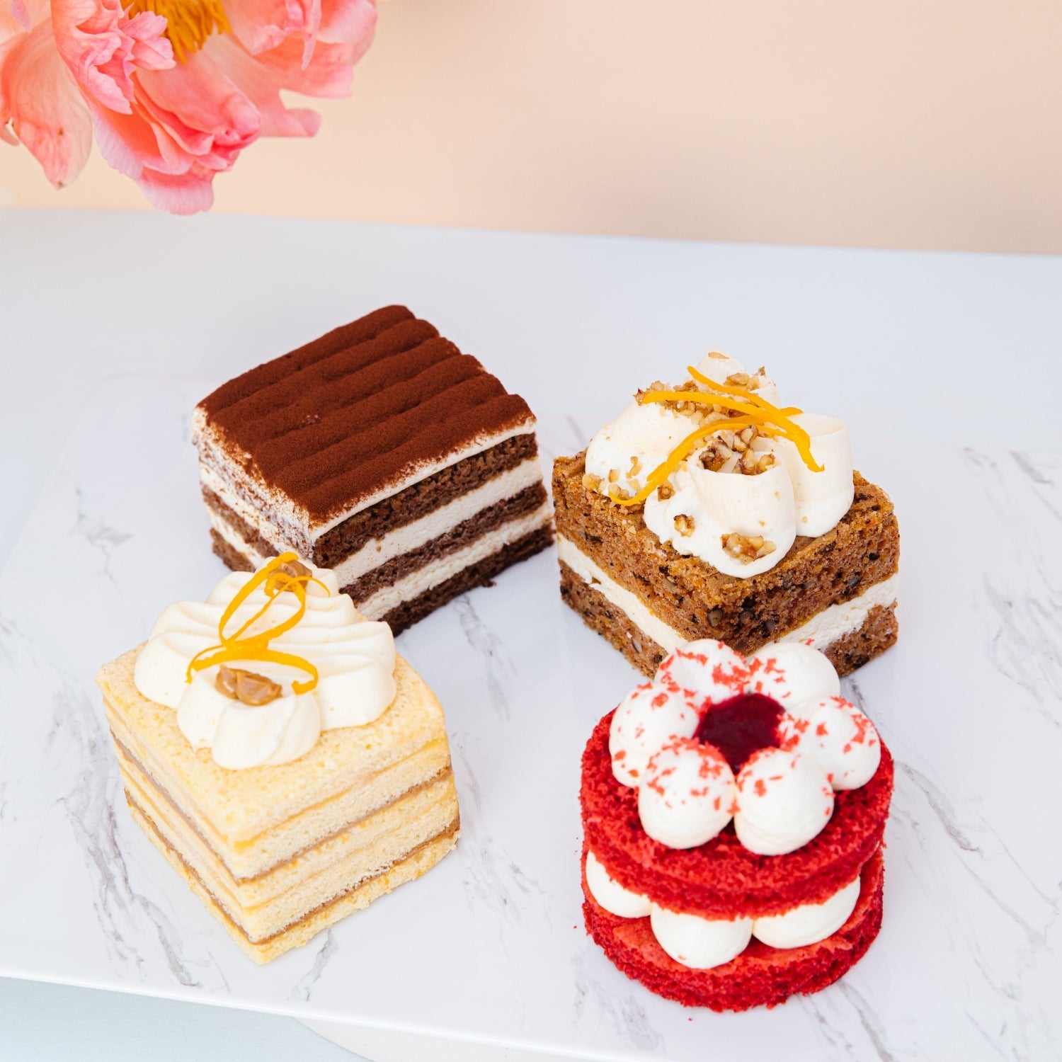 Incluye 1 unidad de cada uno: Panqueque Naranja Manjar (trozo), Tiramisú (trozo), Red Velvet (trozo) y Carrot Cake (trozo). Todos elaborados sin azúcar añadida, endulzados con alulosa 100% y libres de trigo. Una experiencia variada y deliciosa!