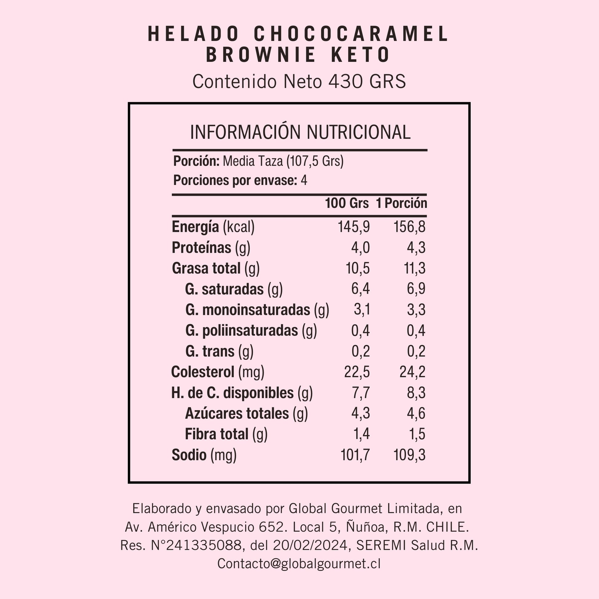 Crema de leche, leche entera líquida, leche en polvo descremada, chocolate 56% sin azúcar, alulosa 100% pura, eritritol, mantequilla, cubitos de brownie nuts KETO Zuitys, cacao, estabilizantes para helados, sal.