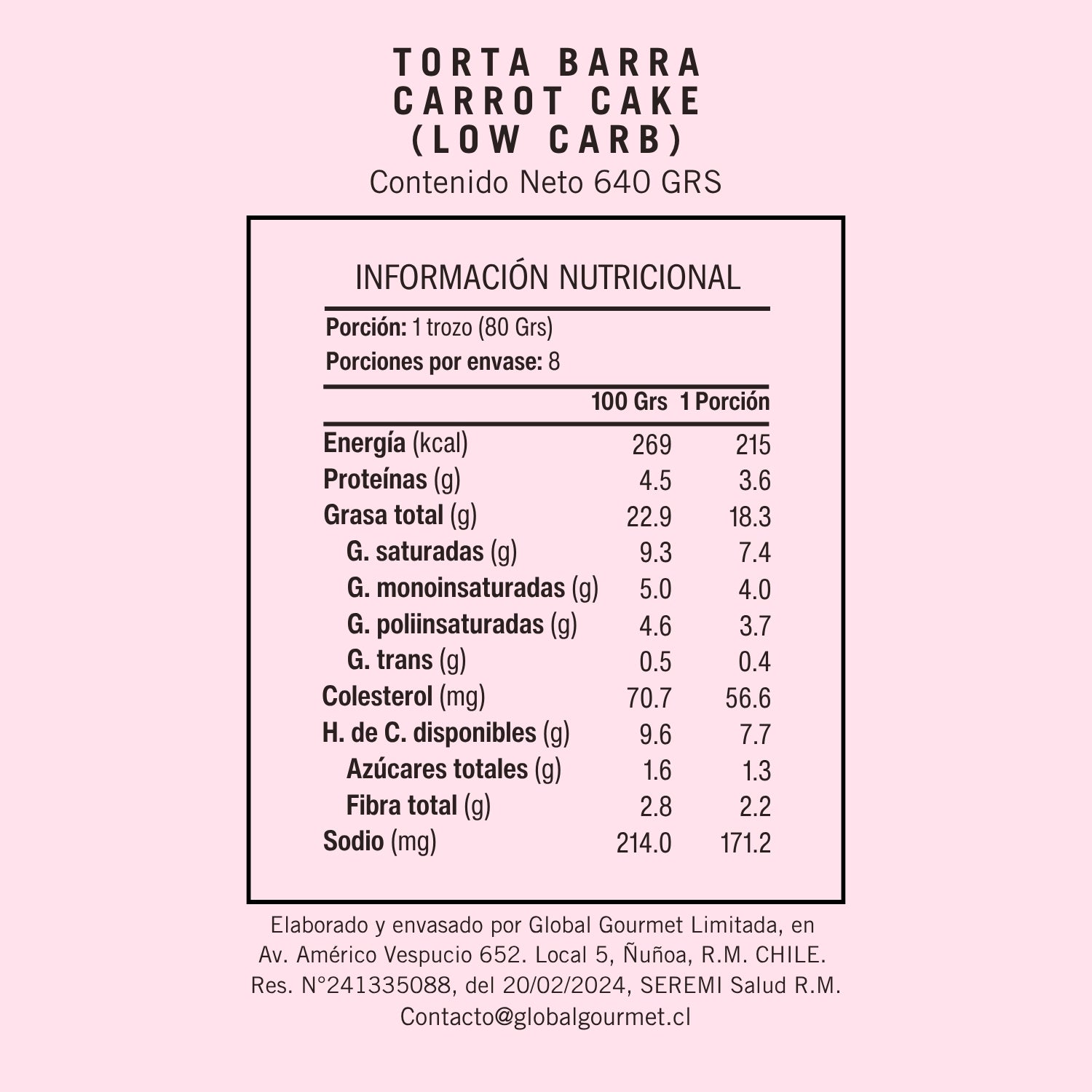 Torta Barra Carrot Cake LowCarb Sin Azúcar